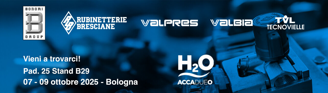 Among the multi-utility sector solutions presented by the group, standout products include the BUBBLE-SFER QB and the patented gas ball valves by Rubinetterie Bresciane Bonomi, the TURBO RING quick-connect compression fittings by Tecnovielle, the energy recovery valve Locpower patented by Valpres, and the multi-turn electric actuator MT patented by Valbia.